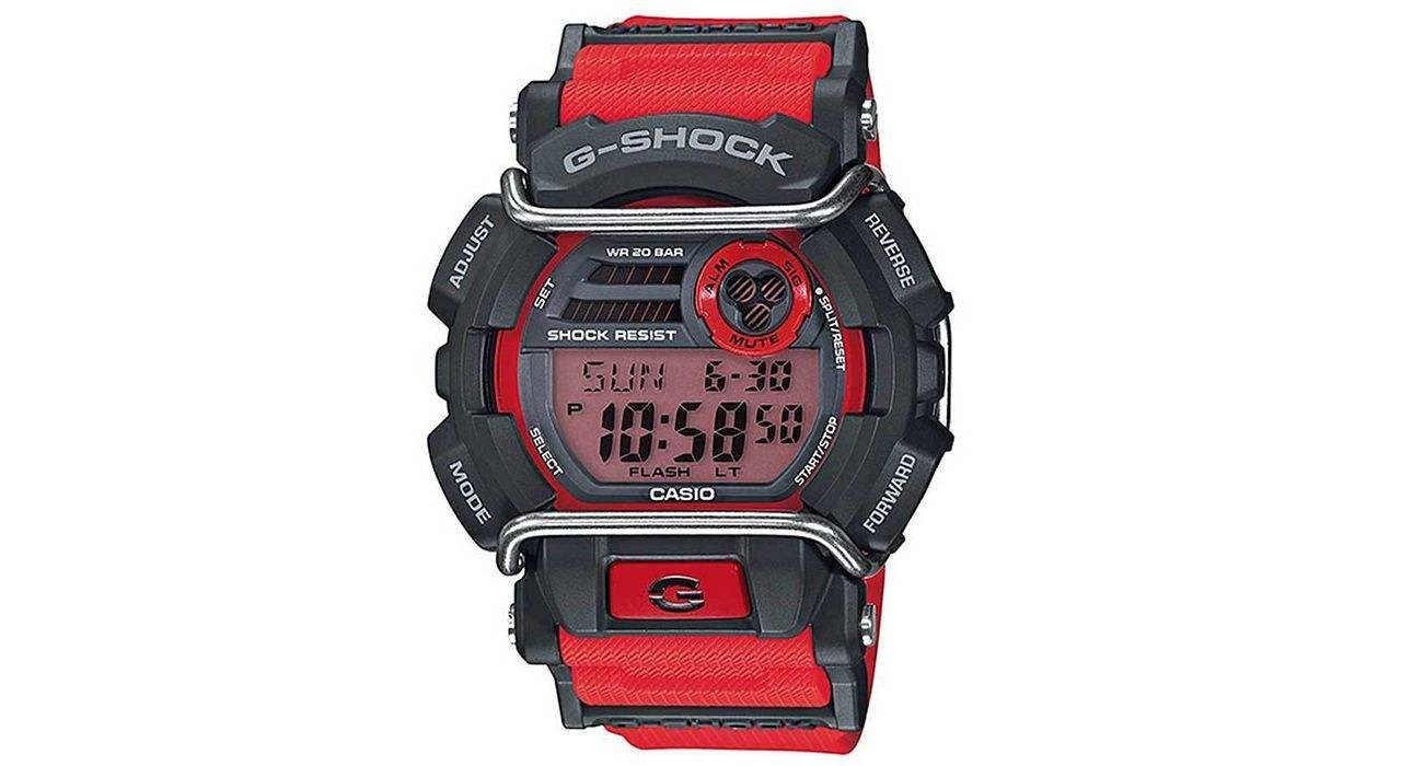 اگر به دسته ساعت های دیجیتال اسپرت علاقمند هستید احتمالا ساعت مچی دیجیتالی مردانه برند کاسیو مدل GD-400-4DR مورد توجه شما باشد. این مدل از ساعت مردانه از سری ساعت های جی شاک برند کاسیو است. ساعت های سری جی شاک با هدف ساخت ساعت های بسیار سر سخت و مقاوم به ضربه تولید و عرضه شده اند. به طور کلی ساعتهای مچی جی شاک مقاومت بالایی در برابر فشار مکانیکی، میدانهای الکتریکی و الکترومغناطیسی، و همچنین مقاومتی بیش از حد معمول در برابر آب دارند.