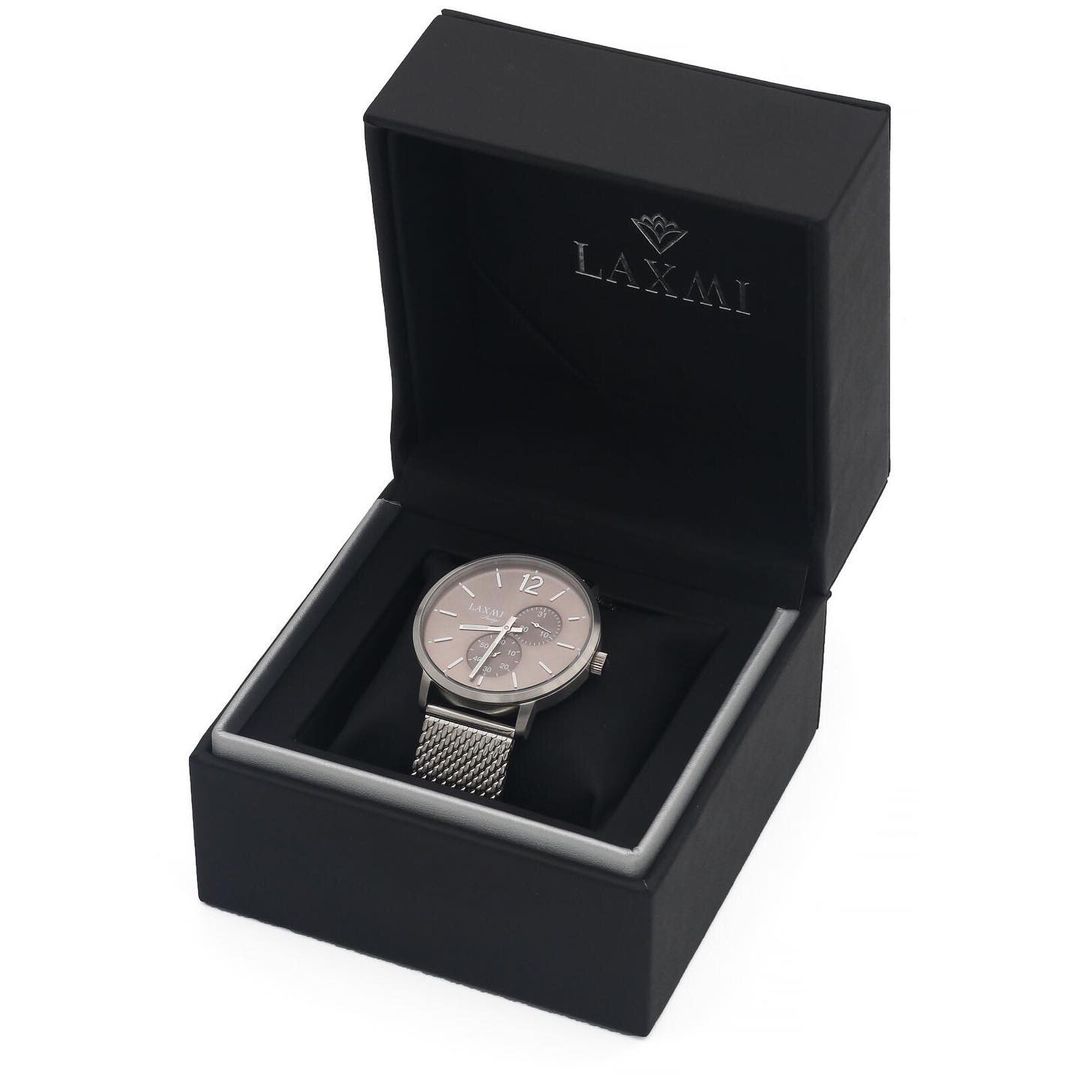 لاکسمی با استراتژی خود باعت شده تمام محصولاتش در کنار ظاهر و طراحی زیبا از مقاومت و کارایی بی نظری نیز برخوردار باشد. در مدل8051 برند لاکسمی از فرم صفحه گرد استفاده شده است. جالب است بدانید فرم صفحه ساعت هم با رسمیت آن ارتباط دارد. این فرم ساعت در کنار رنگ صفحه طوسی و رنگ بدنه نقره ای آن. بی شک یک مدل شیک و جذاب کلاسیک برای اقایان خاص پسند به حساب می آید.
