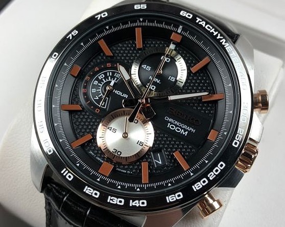 یکی از مهمترین ویژگی های ساعت مردانه سیکو مدل ssb265 داشتن بند های بسیار بادوام و طراحی زیبای آن می باشد. جنس قاب در ساعت مچی مردانه مدل ssb265 استیل است. جنس بند این مدل از ساعت مردانه برند سیکو از چرم با رنگ مشکی طراحی شده است. این مدل ساعت مچی مردانه میتواند گزینه بی نظیری برای آقایان خاص پسند با استایل اسپورت و روزانه باشد. همچنین این ساعت مچی سیکو از تکنولوژی های کرنوگراف، تاریخ و سرعت سنج برخوردار است. میزان مقاوت در برابر آب این مدل ازساعت مچی مردانه سیکو 100 میلی متر است. این ساعت با این میزان ضد آبی مناسب برای شنا در عمق کم استخر است.